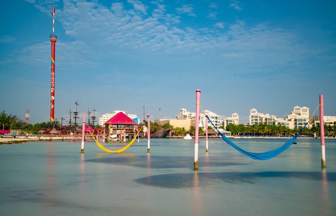 la estructura más alta de todo Cancún, tiene una altura de 110 metros y capacidad para 60 personas; puede elevarse hasta 85 metros y mientras sube va girando suavemente en círculos.
