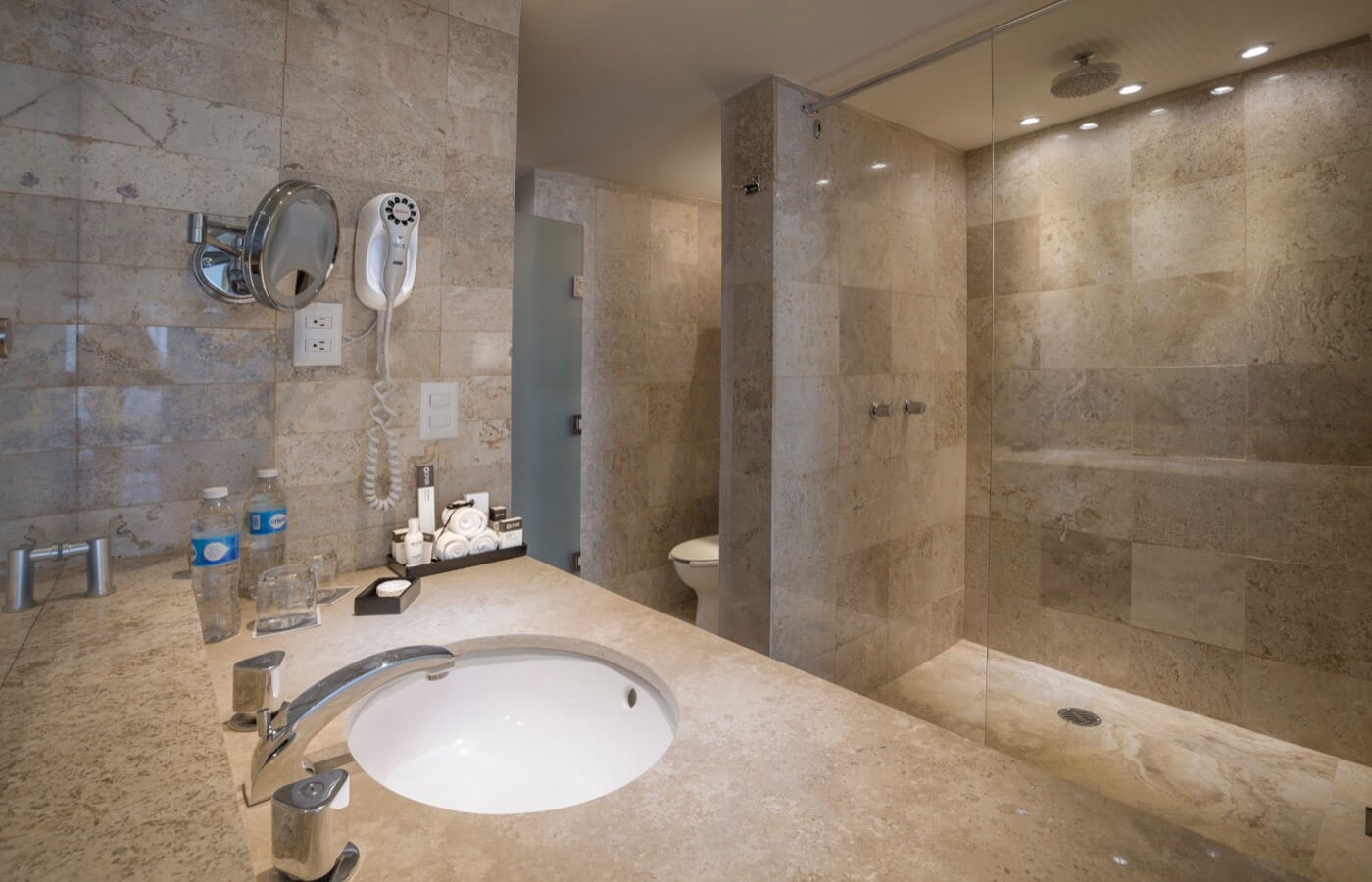 Está situado junto a la playa.